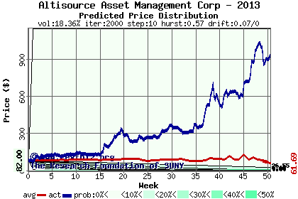 The following graph plots the year-to-date performance of the stock for 2013 compared to the probability calculated by a random walk model.