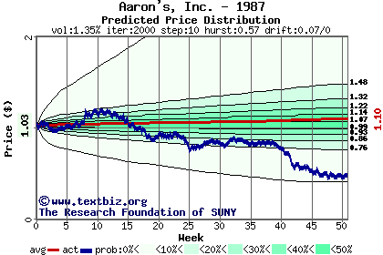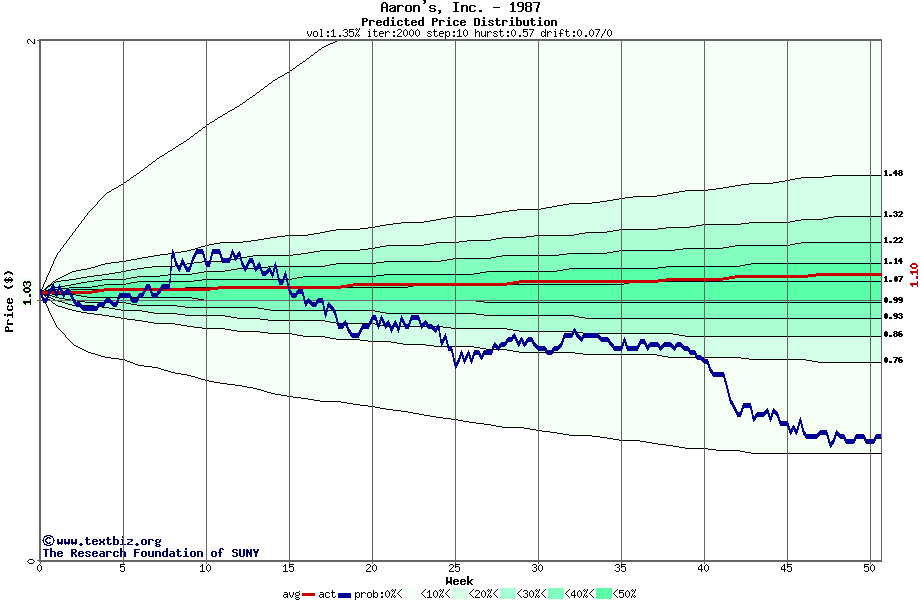 The following graph plots the year-to-date performance of the stock for 1987 compared to the probability calculated by a random walk model.