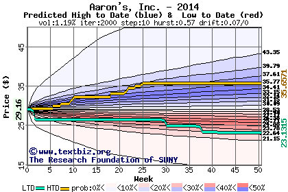 The following graph plots the year-to-date performance of the stock for 2014 compared to the probability calculated by a random walk model.