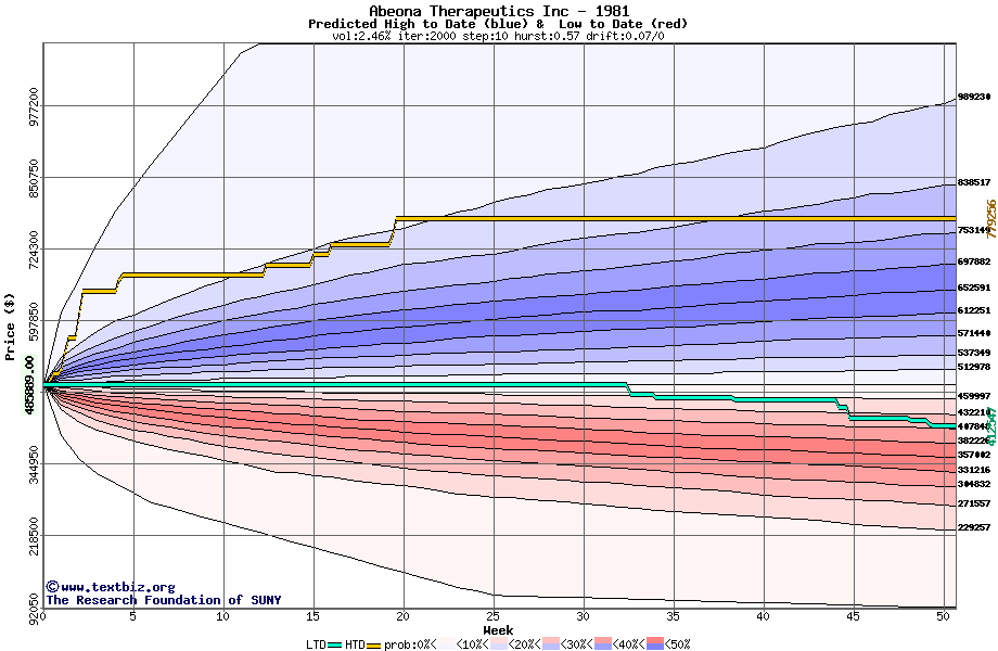The following graph plots the year-to-date performance of the stock for 1981 compared to the probability calculated by a random walk model.