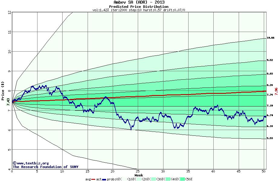 The following graph plots the year-to-date performance of the stock for 2013 compared to the probability calculated by a random walk model.