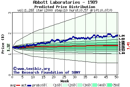The following graph plots the year-to-date performance of the stock for 1989 compared to the probability calculated by a random walk model.