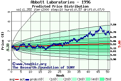 The following graph plots the year-to-date performance of the stock for 1996 compared to the probability calculated by a random walk model.
