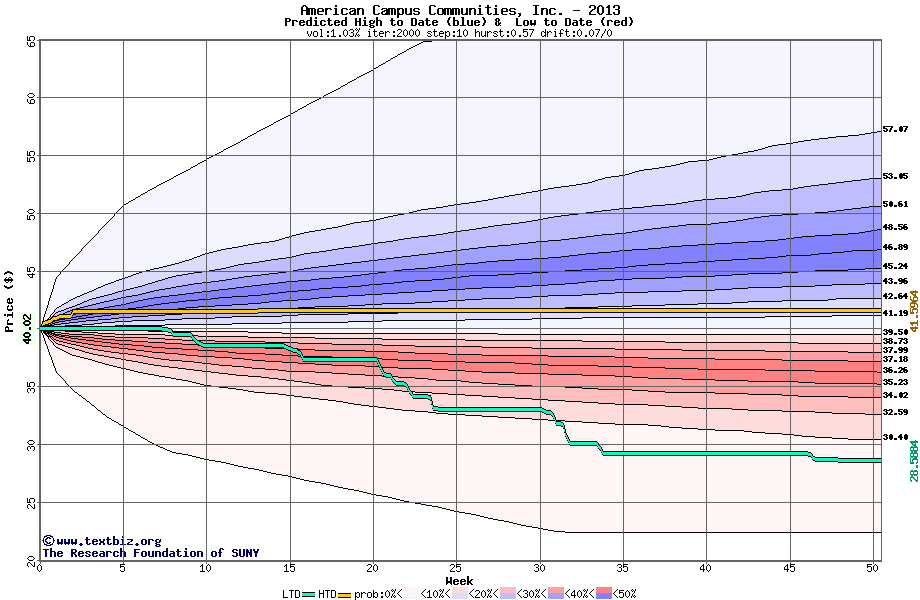 The following graph plots the year-to-date performance of the stock for 2013 compared to the probability calculated by a random walk model.