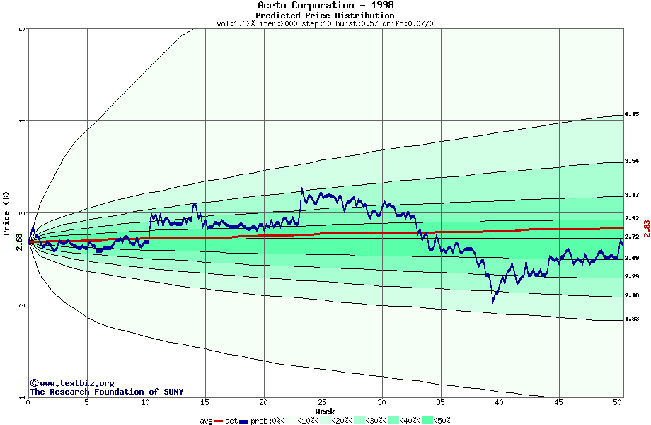 The following graph plots the year-to-date performance of the stock for 1998 compared to the probability calculated by a random walk model.