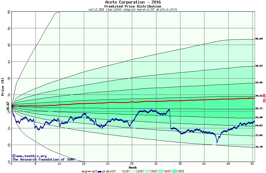 The following graph plots the year-to-date performance of the stock for 2016 compared to the probability calculated by a random walk model.