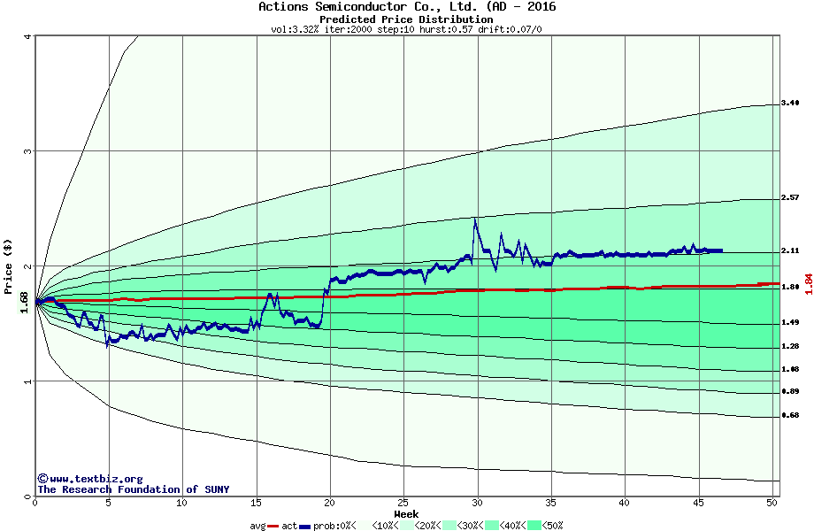 The following graph plots the year-to-date performance of the stock for 2016 compared to the probability calculated by a random walk model.
