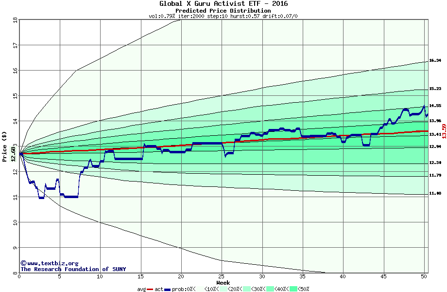 The following graph plots the year-to-date performance of the stock for 2016 compared to the probability calculated by a random walk model.