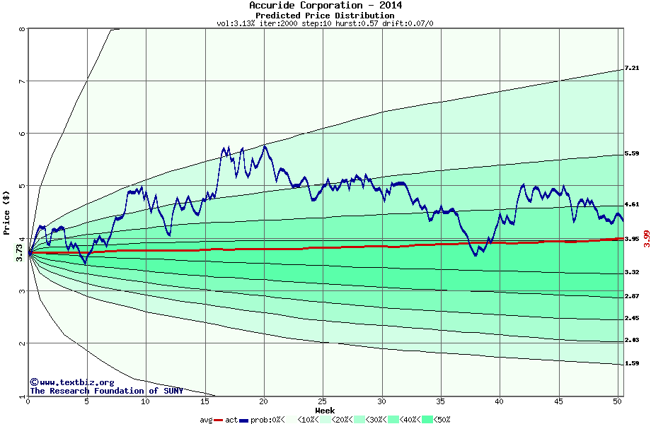The following graph plots the year-to-date performance of the stock for 2014 compared to the probability calculated by a random walk model.