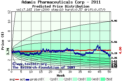 The following graph plots the year-to-date performance of the stock for 2011 compared to the probability calculated by a random walk model.