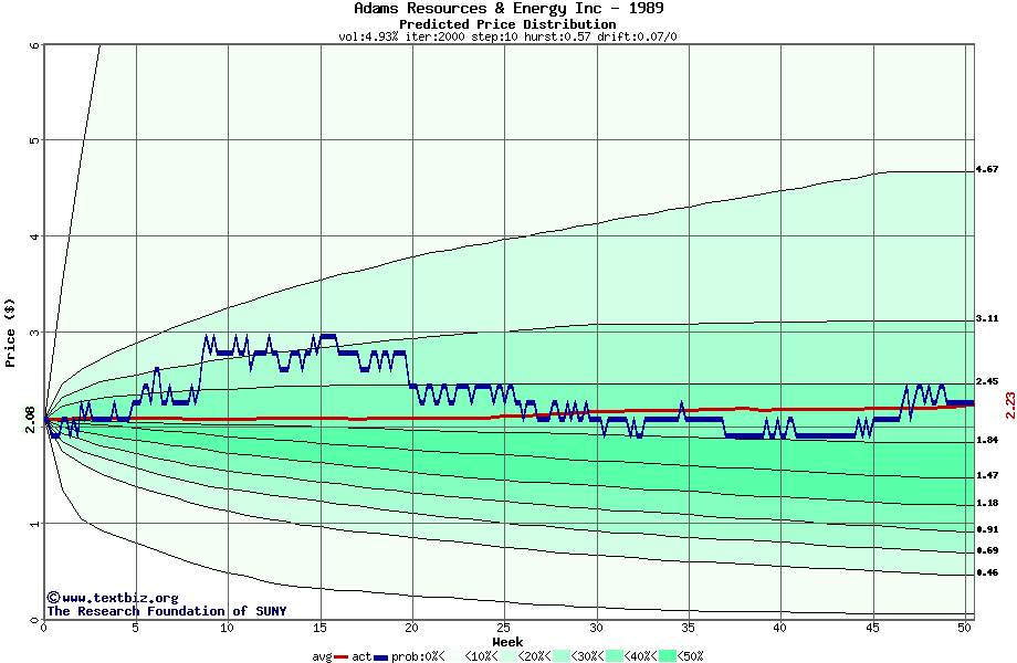 The following graph plots the year-to-date performance of the stock for 1989 compared to the probability calculated by a random walk model.
