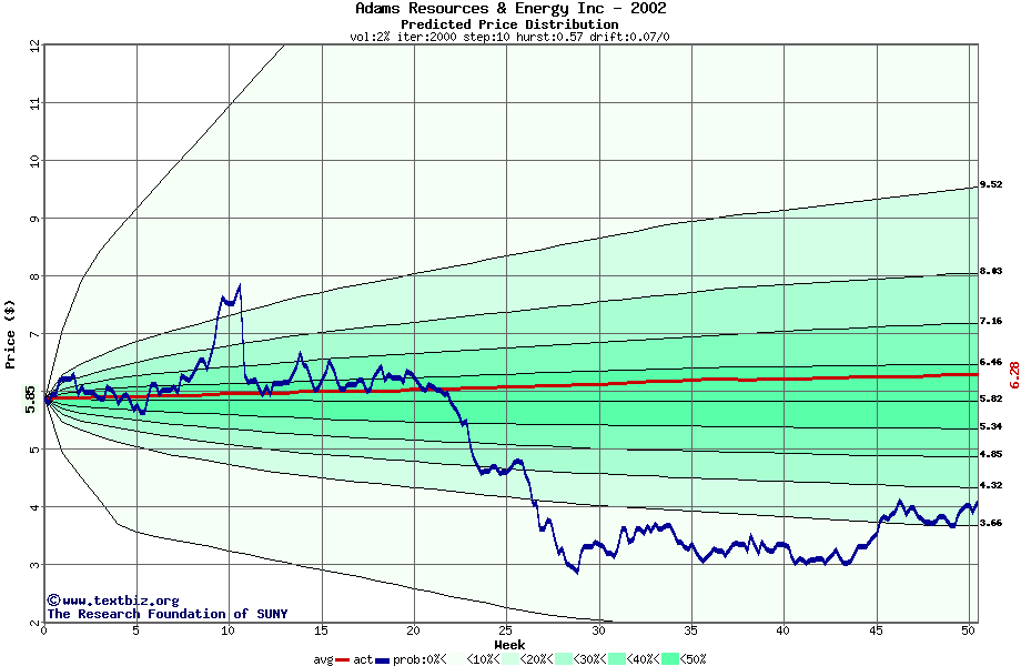 The following graph plots the year-to-date performance of the stock for 2002 compared to the probability calculated by a random walk model.