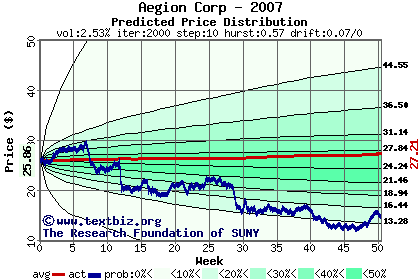 The following graph plots the year-to-date performance of the stock for 2007 compared to the probability calculated by a random walk model.