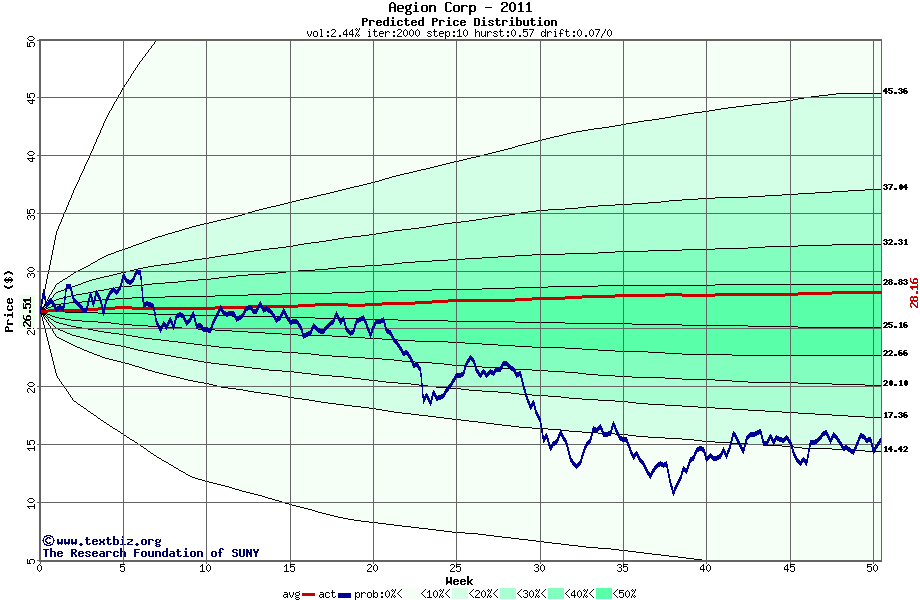 The following graph plots the year-to-date performance of the stock for 2011 compared to the probability calculated by a random walk model.