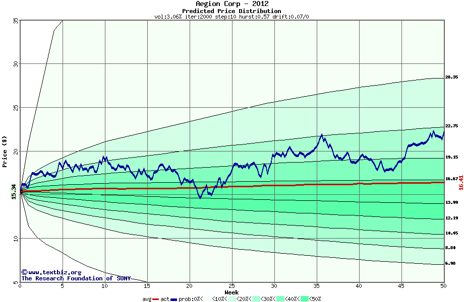 The following graph plots the year-to-date performance of the stock for 2012 compared to the probability calculated by a random walk model.