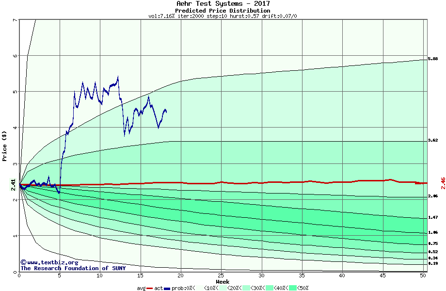 The following graph plots the year-to-date performance of the stock for 2017 compared to the probability calculated by a random walk model.