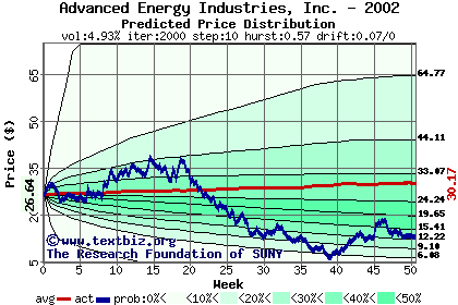 The following graph plots the year-to-date performance of the stock for 2002 compared to the probability calculated by a random walk model.