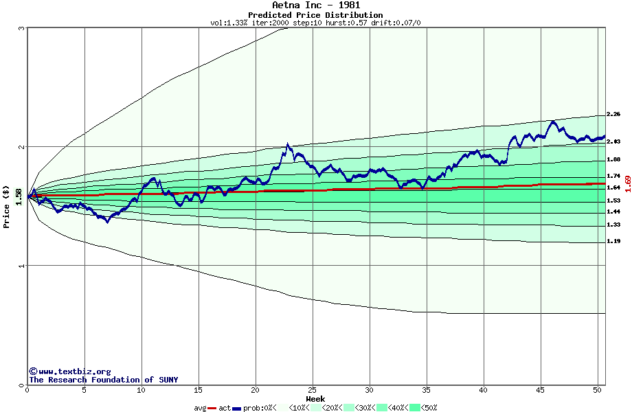 The following graph plots the year-to-date performance of the stock for 1981 compared to the probability calculated by a random walk model.