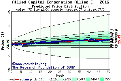 The following graph plots the year-to-date performance of the stock for 2016 compared to the probability calculated by a random walk model.