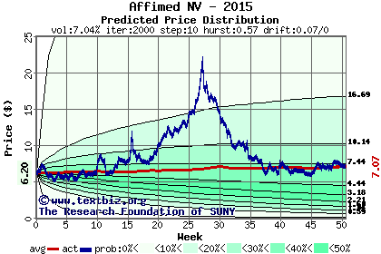 The following graph plots the year-to-date performance of the stock for 2015 compared to the probability calculated by a random walk model.