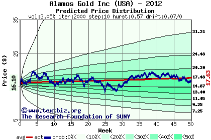 The following graph plots the year-to-date performance of the stock for 2012 compared to the probability calculated by a random walk model.