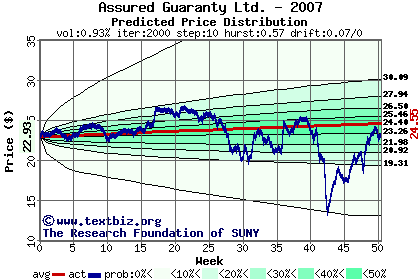 The following graph plots the year-to-date performance of the stock for 2007 compared to the probability calculated by a random walk model.