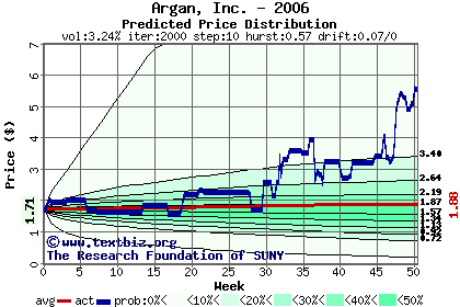 The following graph plots the year-to-date performance of the stock for 2006 compared to the probability calculated by a random walk model.
