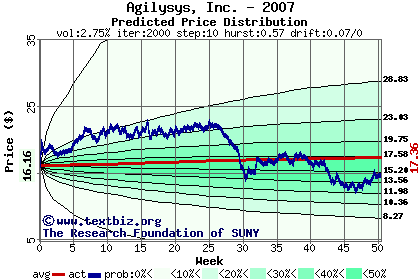 The following graph plots the year-to-date performance of the stock for 2007 compared to the probability calculated by a random walk model.