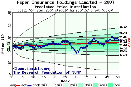 The following graph plots the year-to-date performance of the stock for 2007 compared to the probability calculated by a random walk model.