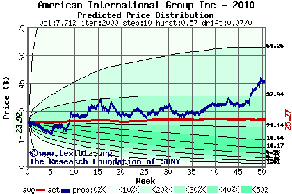 The following graph plots the year-to-date performance of the stock for 2010 compared to the probability calculated by a random walk model.
