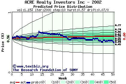 The following graph plots the year-to-date performance of the stock for 2002 compared to the probability calculated by a random walk model.