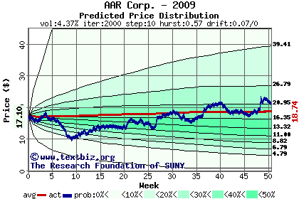 The following graph plots the year-to-date performance of the stock for 2009 compared to the probability calculated by a random walk model.