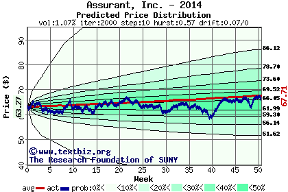 The following graph plots the year-to-date performance of the stock for 2014 compared to the probability calculated by a random walk model.