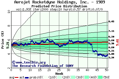 The following graph plots the year-to-date performance of the stock for 1989 compared to the probability calculated by a random walk model.