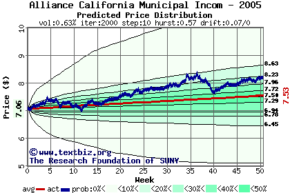 The following graph plots the year-to-date performance of the stock for 2005 compared to the probability calculated by a random walk model.