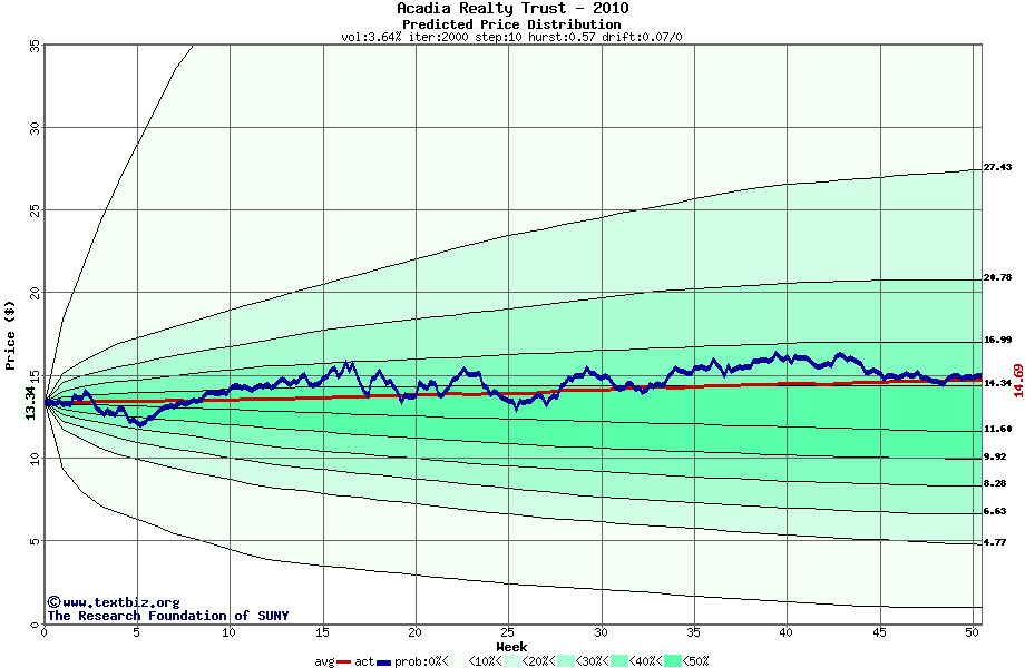 The following graph plots the year-to-date performance of the stock for 2010 compared to the probability calculated by a random walk model.