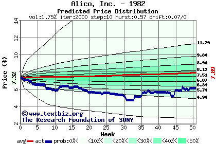The following graph plots the year-to-date performance of the stock for 1982 compared to the probability calculated by a random walk model.