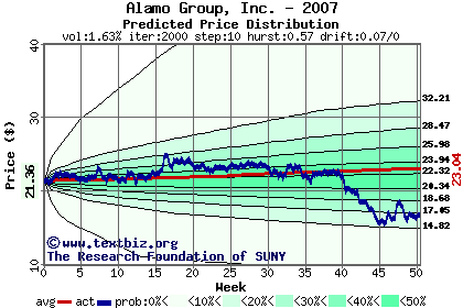 The following graph plots the year-to-date performance of the stock for 2007 compared to the probability calculated by a random walk model.