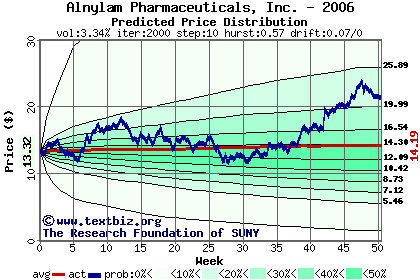The following graph plots the year-to-date performance of the stock for 2006 compared to the probability calculated by a random walk model.