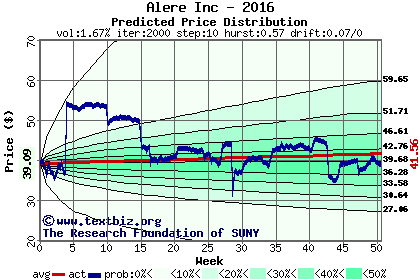 The following graph plots the year-to-date performance of the stock for 2016 compared to the probability calculated by a random walk model.