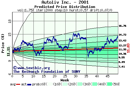 The following graph plots the year-to-date performance of the stock for 2001 compared to the probability calculated by a random walk model.