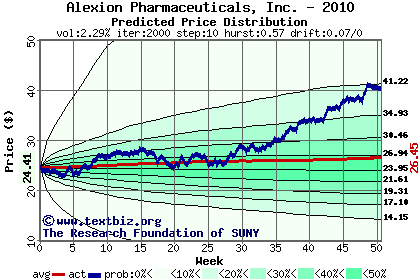 The following graph plots the year-to-date performance of the stock for 2010 compared to the probability calculated by a random walk model.