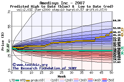 The following graph plots the year-to-date performance of the stock for 2007 compared to the probability calculated by a random walk model.