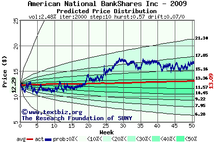 The following graph plots the year-to-date performance of the stock for 2009 compared to the probability calculated by a random walk model.
