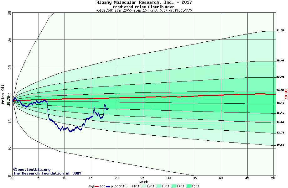 The following graph plots the year-to-date performance of the stock for 2017 compared to the probability calculated by a random walk model.