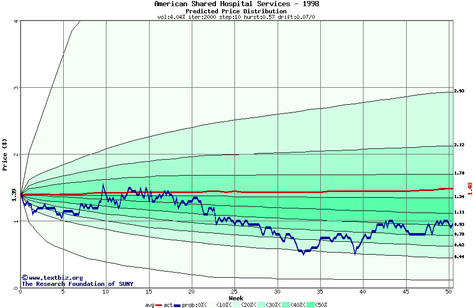 The following graph plots the year-to-date performance of the stock for 1998 compared to the probability calculated by a random walk model.