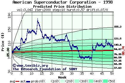 The following graph plots the year-to-date performance of the stock for 1998 compared to the probability calculated by a random walk model.