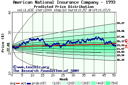 The following graph plots the year-to-date performance of the stock for 1993 compared to the probability calculated by a random walk model.