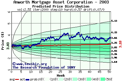The following graph plots the year-to-date performance of the stock for 2003 compared to the probability calculated by a random walk model.