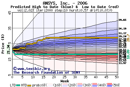 The following graph plots the year-to-date performance of the stock for 2006 compared to the probability calculated by a random walk model.